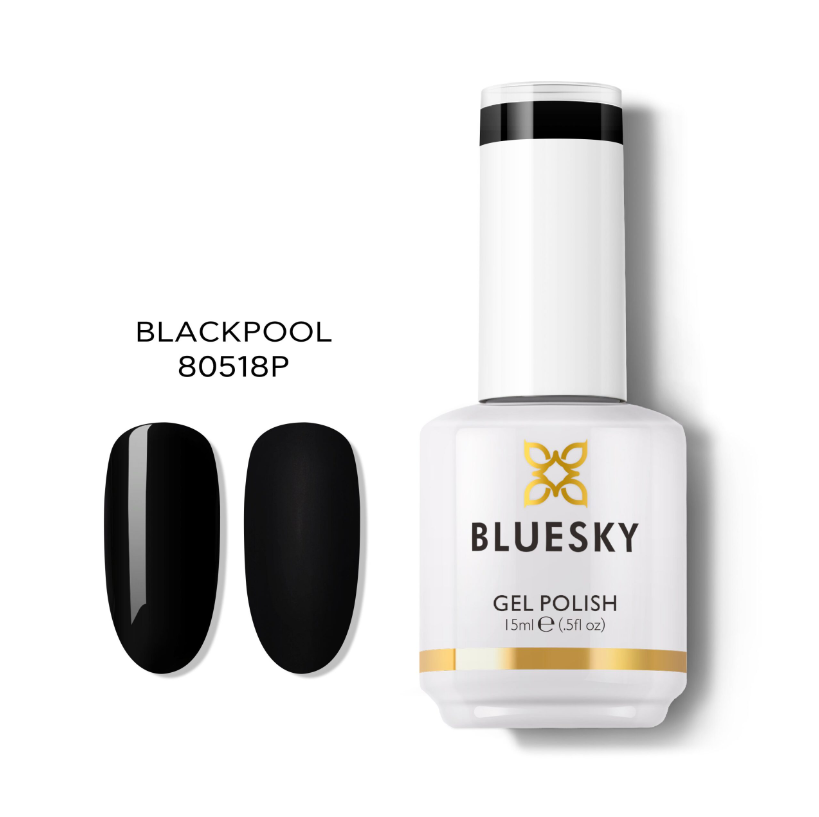 Bluesky Black Pool – 80518P. Κλασικό μαύρο ημιμόνιμο βερνίκι με αισθητική δύναμης, κομψότητας και βάθους. Προσφέρει πλήρη κάλυψη (full cover) από την πρώτη στρώση, με ομοιόμορφη εφαρμογή χάρη στη ρευστή του σύσταση. Ιδανικό για δυναμικές, elegant και μυστηριώδεις εμφανίσεις, με διάρκεια έως και 3 εβδομάδες χωρίς ξεφλούδισμα ή ξεθώριασμα.